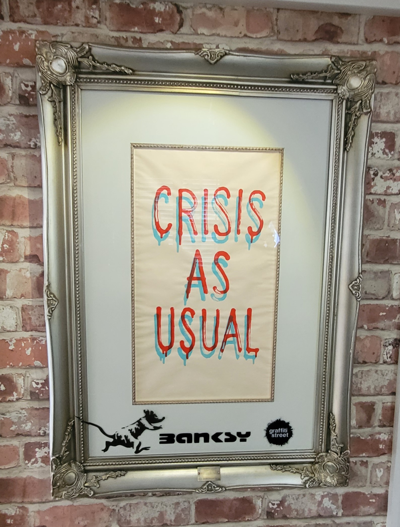 Banksy ultra rare "CRISIS", Gross Domestic Product Exhibition, Croydon. 2019 - Only handed out on occasion in the street to children in front of GDP shop - Screen print on 50gsm paper - limited to 100 / 300 appox. (On newspaper type print, extremely fragile and almost impossible to get in perfect condition)